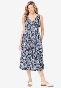 Woman Within has plus size midi dresses that hit all the right marks. Not too short and not too long, midi dresses are beloved by so many because of their conservative, stylish, and universally flattering length.