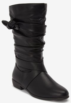 Boot, scoot, and boogie to your favorite songs in our Wide Calf Boots. Offered in medium and wide widths, this beautiful boots will style well with everything in your closet. But if you need some ideas, we suggest our Back Elastic Boot Cut Jeans by ellos® and a Pintucked Flannel Shirt from our tops shop.