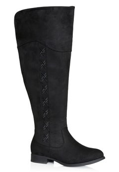 Boot, scoot, and boogie to your favorite songs in our Wide Calf Boots. Offered in medium and wide widths, this beautiful boots will style well with everything in your closet. But if you need some ideas, we suggest our Back Elastic Boot Cut Jeans by ellos® and a Pintucked Flannel Shirt from our tops shop.