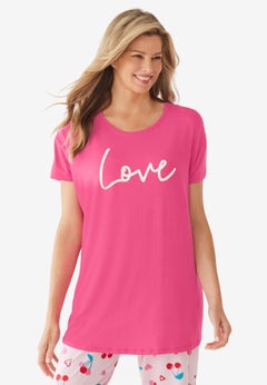 From slouchy lounge tops to scoopneck sleep tees, we have stunning plus size pajama tops for every style preference and body type. Plus, our collection makes it simple to stay comfortable through all the seasons. Enjoy an extra dose of coziness when it’s chilly out in our long-sleeve tees and sweatshirts, and keep sleeping blissfully when the weather heats up in our breathable sleep tees and tanks.