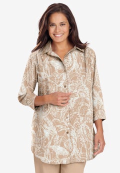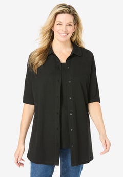 When a plain tee just won’t do, reach for a shirt or blouse instead. A year-round style essential, the right top instantly elevates any outfit. But finding a plus size shirt or blouse that fits flawlessly can be a challenge. Some are too long or too short, others too tight or boxy—and too many gape at the chest. At Woman Within, our plus size blouses and blouses are designed specifically for fuller figures so it’s easy to find a style that fits and flatters your curves. Featuring tons of pretty color and print options, our exclusive collection has something for everyone. Choose from short sleeves, long sleeves, three-quarter sleeves and tanks; breezy popovers, crisp button-downs, tailored blouses, easy tunics and more—all in sizes 12W to 44W.
