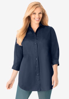 When a plain tee just won’t do, reach for a shirt or blouse instead. A year-round style essential, the right top instantly elevates any outfit. But finding a plus size shirt or blouse that fits flawlessly can be a challenge. Some are too long or too short, others too tight or boxy—and too many gape at the chest. At Woman Within, our plus size blouses and blouses are designed specifically for fuller figures so it’s easy to find a style that fits and flatters your curves. Featuring tons of pretty color and print options, our exclusive collection has something for everyone. Choose from short sleeves, long sleeves, three-quarter sleeves and tanks; breezy popovers, crisp button-downs, tailored blouses, easy tunics and more—all in sizes 12W to 44W.