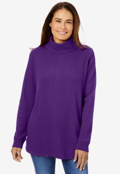 Turtleneck sweaters are an essential cold-weather wardrobe staple. These warm and cozy tops are perfect for layering and can instantly elevate your daily looks. Our collection of plus size turtlenecks is available in sizes 10 to 40 and can be paired effortlessly with our other seasonal and year-round separates.